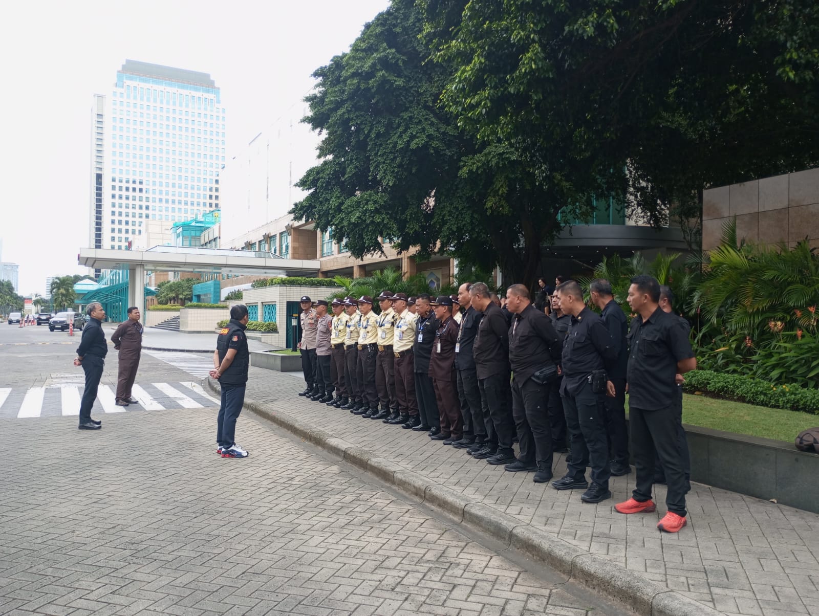 Kapolres Metro Jakarta Pusat, KBP. Reynold E.P. Hutagalung, menekankan kepada seluruh personel agar mengedepankan pendekatan persuasif dan humanis, menjaga sikap serta tidak terpancing provokasi, serta tetap berkoordinasi dengan pihak pengamanan internal gedung guna menciptakan situasi yang aman dan kondusif.