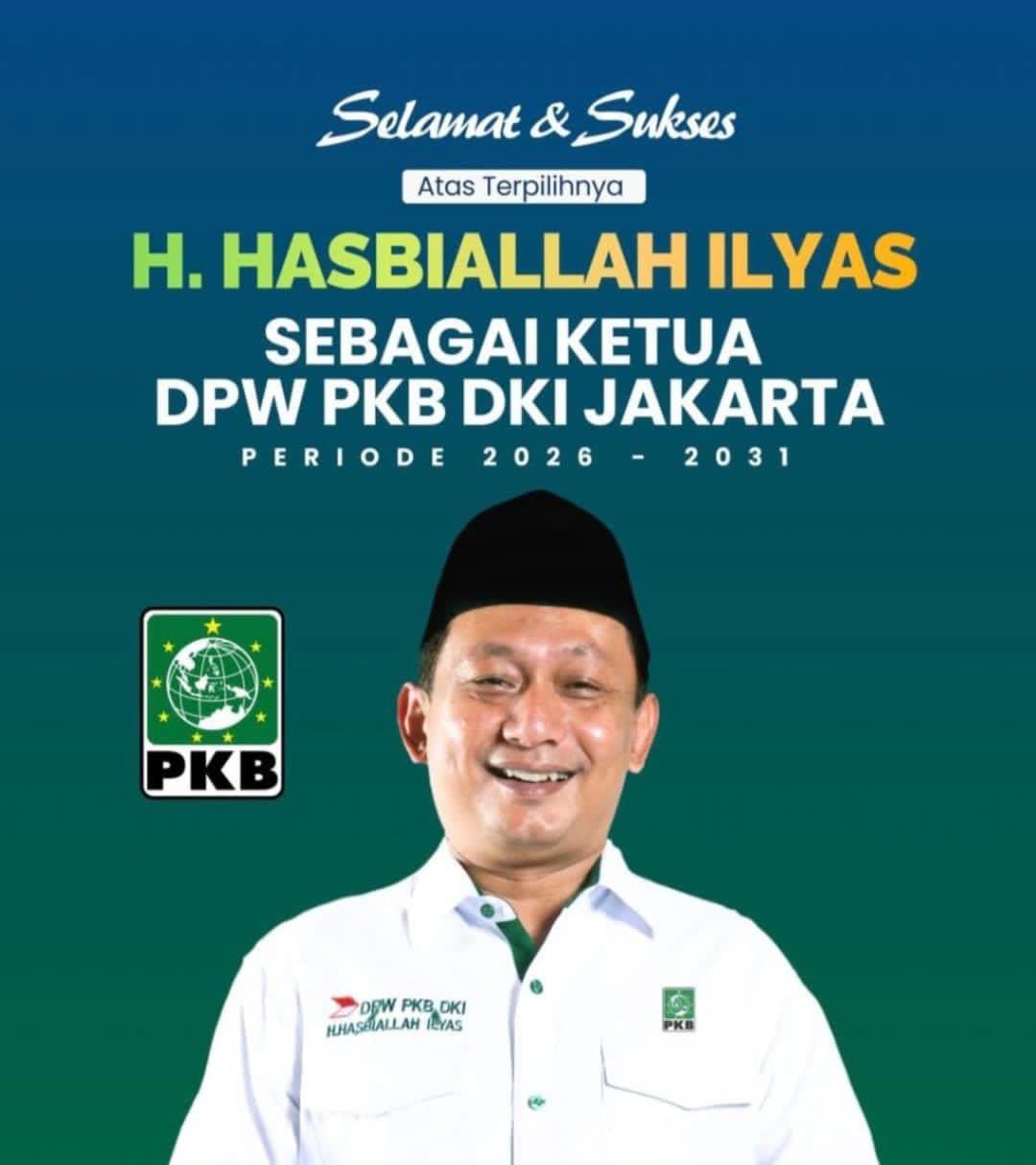 H. Hasbiallah Ilyas resmi terpilih sebagai Ketua Dewan Pimpinan Wilayah (DPW) Partai Kebangkitan Bangsa (PKB) DKI Jakarta untuk periode 2026–2031. Penetapan tersebut menjadi tonggak penting dalam konsolidasi dan penguatan struktur partai di ibu kota.